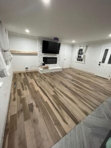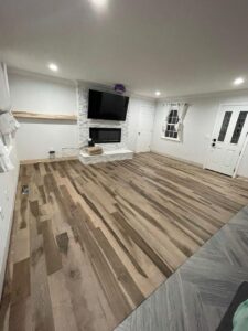 This project showcases expert hardwood floor installation and refinishing, enhancing the space with durability and timeless elegance. The result is a beautifully finished floor that adds warmth and character to the home.