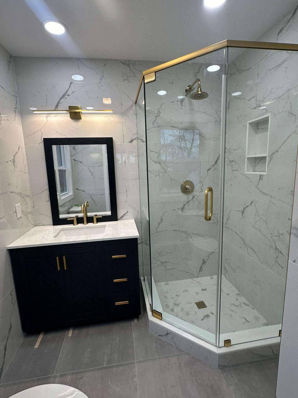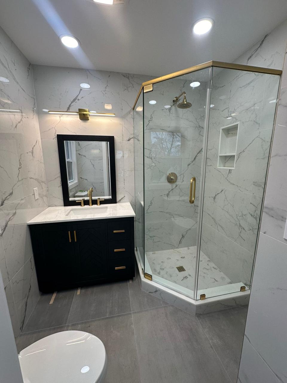 This bathroom renovation upgraded the space with modern fixtures, fresh finishes, and a sleek design. The outcome is a stylish and functional retreat that boosts both comfort and visual appeal.