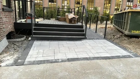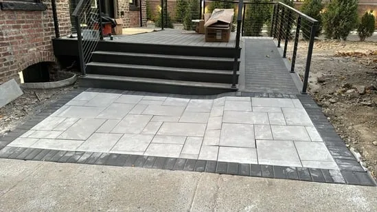 Patio Paver Installation with Modern Stair Access